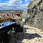 De 1-slaapkamer Das Ferienhaus Mit Aussicht ligt op 3 km afstand van Richard-Wagner-Denkmal im Liebethaler Grund en nodigt gasten uit om te ontspannen op een terras. Gasten kunnen genieten van wandelen in de villa, gelegen op 7 km van Slot Pillnitz.